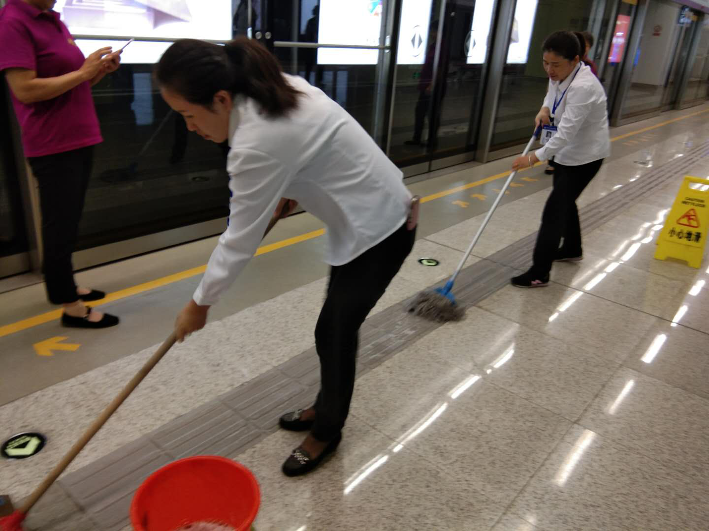 在南京地铁的学习交谈期间,双方对口专业人员的沟通交流从前期的开荒、组织结构、物业管理、运营模式等方面入手,在轨道交通过程中涉及到物业保洁相关细节,如早晚高峰期、节假日高峰期,玻璃、电梯、卫生间、不锈钢等重点项目的保洁保养,以及针对服务运营方案和预察现场的调研学习,包括人员分布、工作流程、标准、制度、安全及突发事件的应对等。