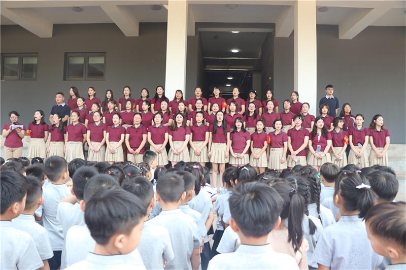 树恩附小的全体师生与初中部和高中部大哥哥、大姐姐们一起参加了新学期的第一次升旗仪式。