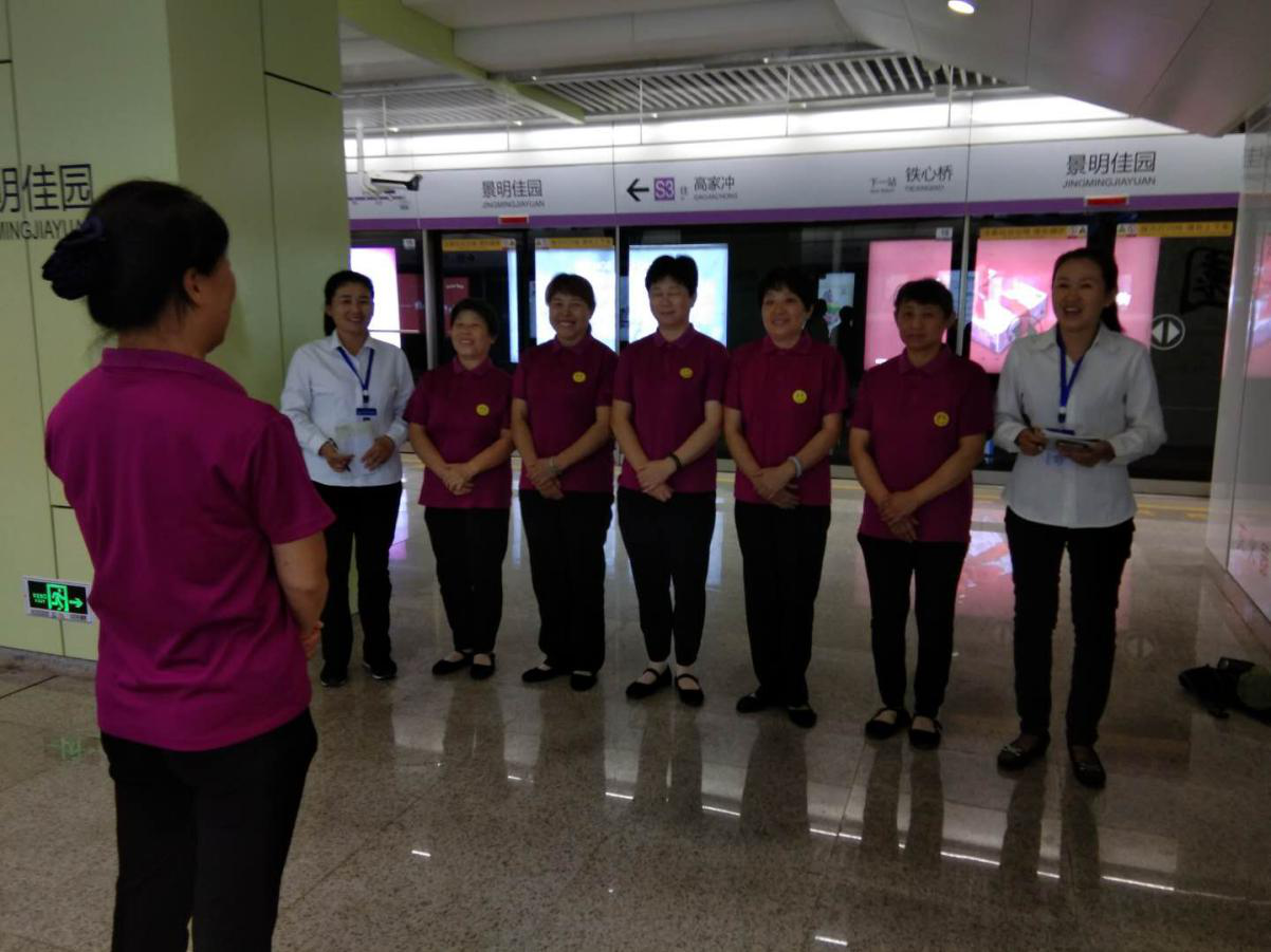在南京地铁的学习交谈期间,双方对口专业人员的沟通交流从前期的开荒、组织结构、物业管理、运营模式等方面入手,在轨道交通过程中涉及到物业保洁相关细节,如早晚高峰期、节假日高峰期,玻璃、电梯、卫生间、不锈钢等重点项目的保洁保养,以及针对服务运营方案和预察现场的调研学习,包括人员分布、工作流程、标准、制度、安全及突发事件的应对等。