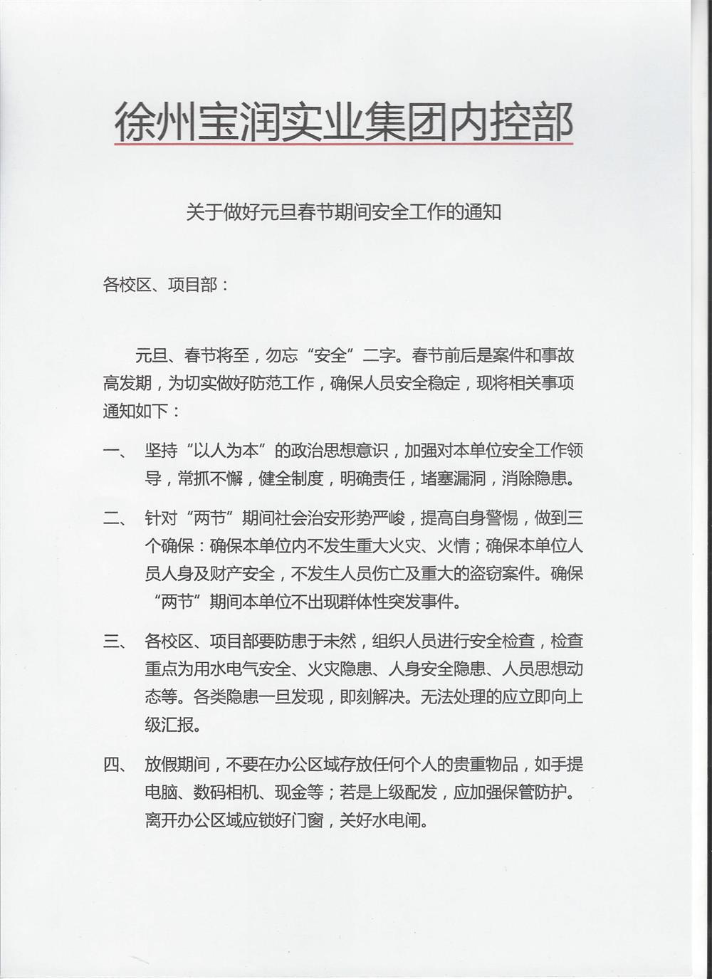 关于做好元旦春节期间安全工作的通知