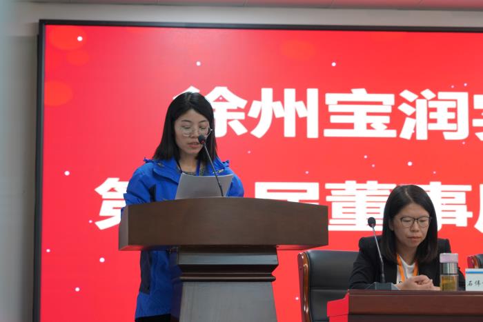 徐州宝润实业上市集团党委常委、办公室主任、人力资源部长郝雪雪宣读候选人简历。