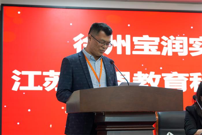 董事局董事、徐州市树恩中学副校长、徐州市树恩中学附属小学高铁校区校长、徐州市树恩外国语小学校长胡钢同志做工作汇报。