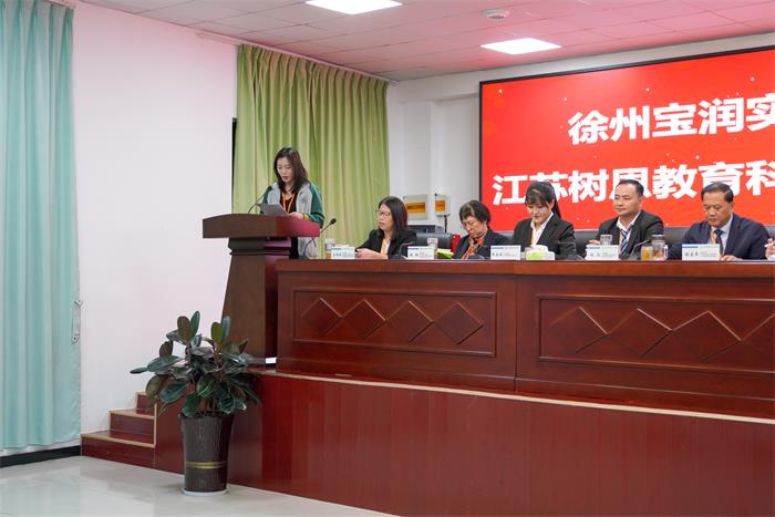 董事局董事、徐州市树恩中学总校长兼初中部高铁校区校长薛淑萍同志做工作汇报。