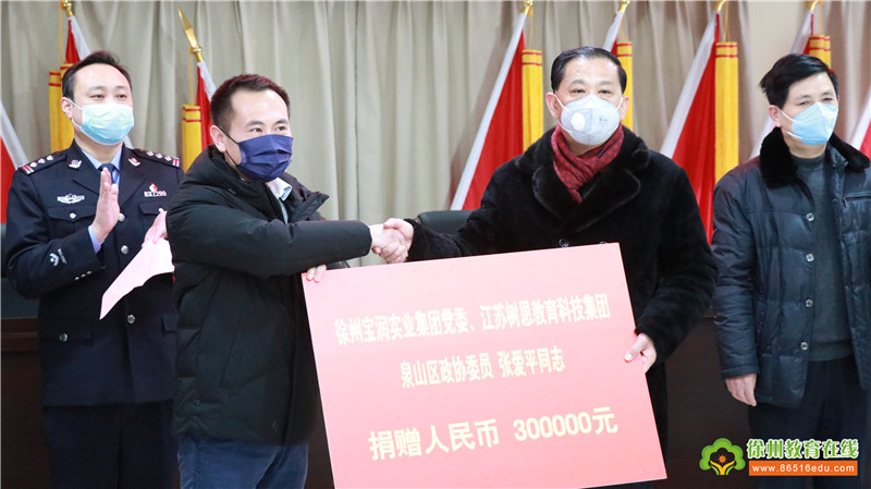 随后,张爱平同志为泉山区防控疫情捐款30万元,王陵街道办事处主任马涛同志代表泉山区接受捐赠。